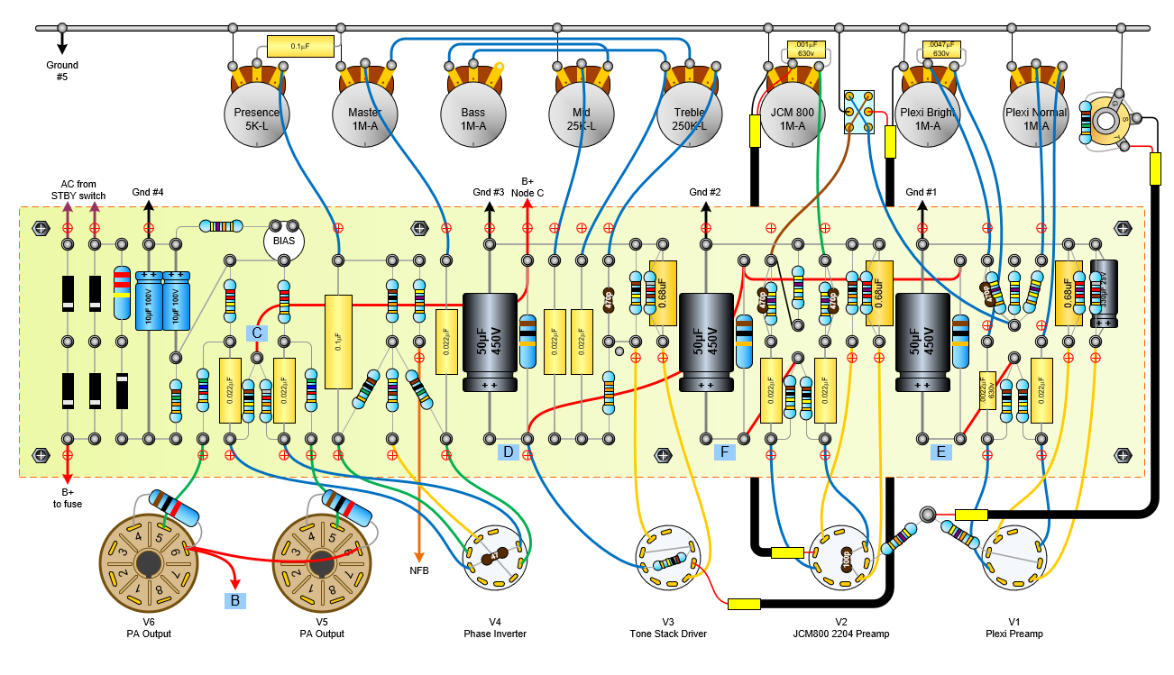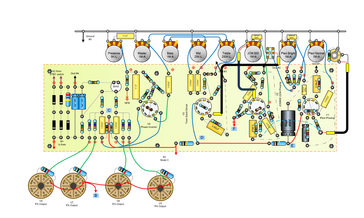 We've got the old pdf file of the layout for my dummy load, as requested on Youtube. I've noted an error. The resistor values are wrong, left to right they should be: 8 4 2 4 4 (ohms each).